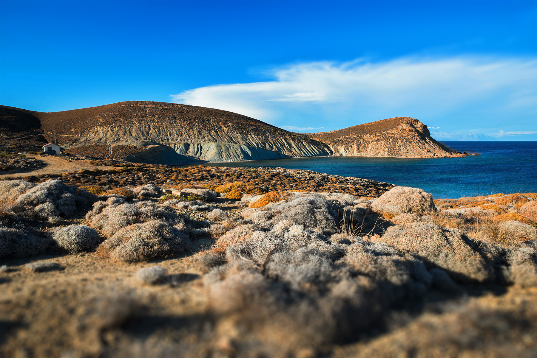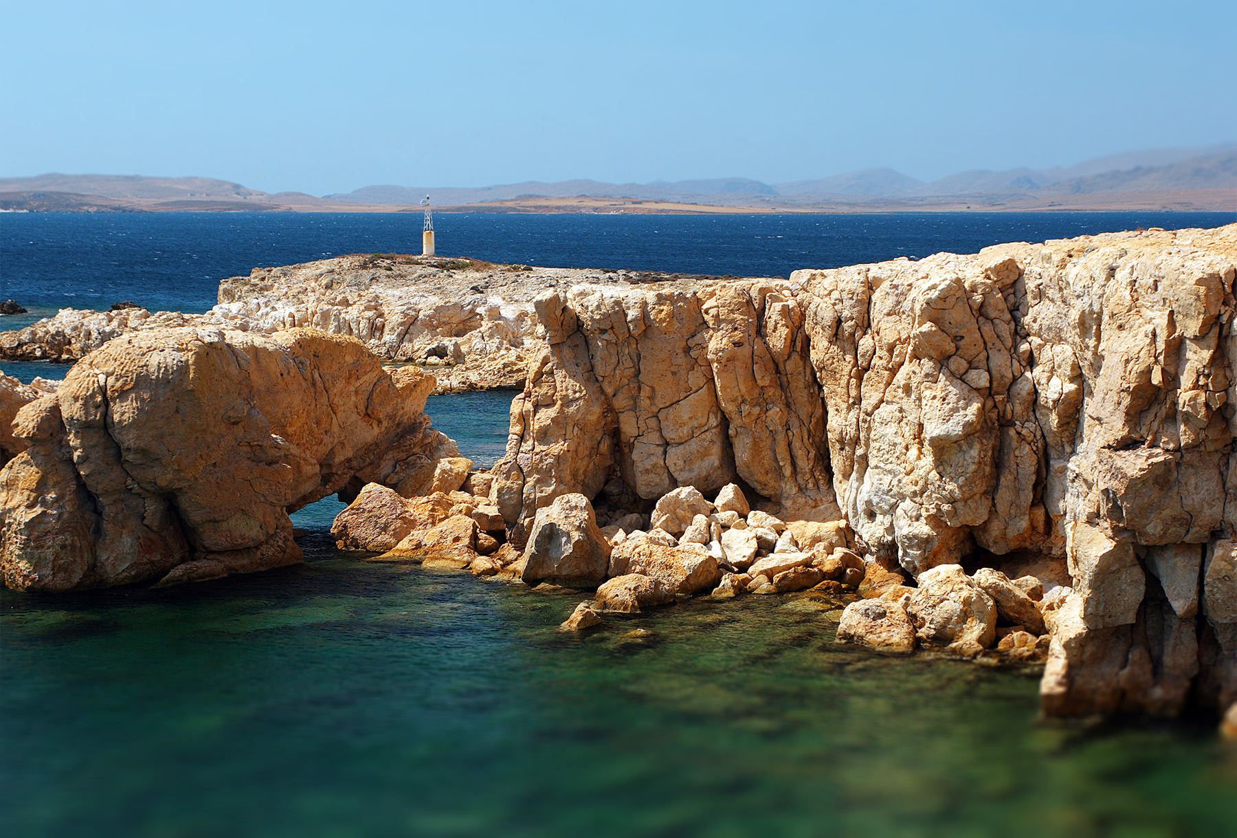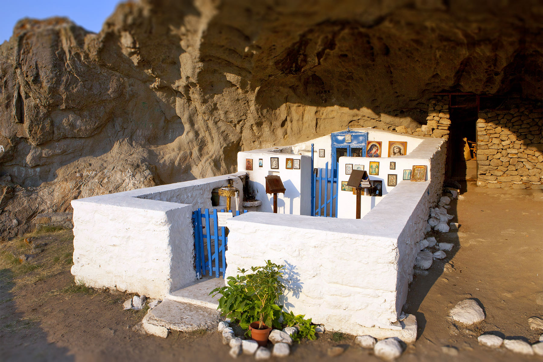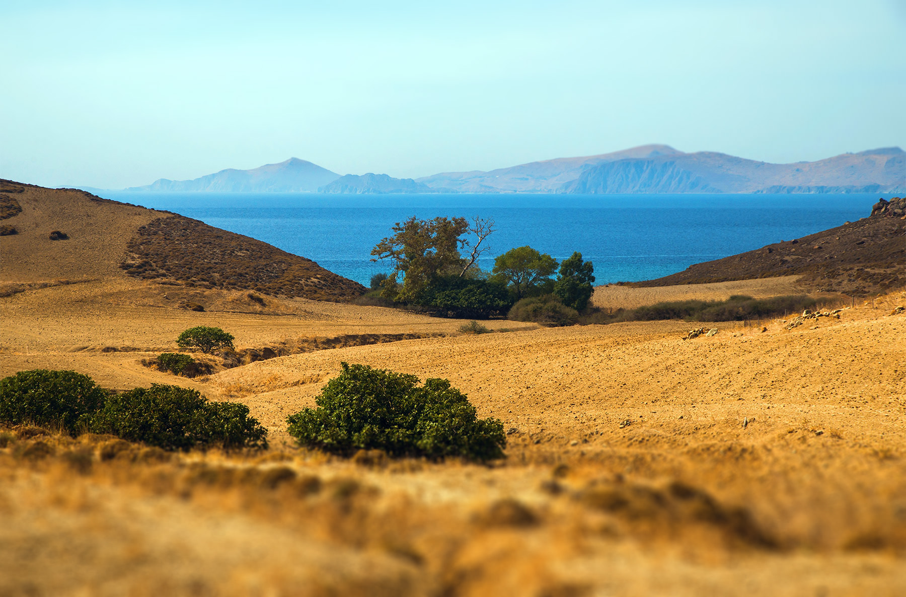 Από την άλλη του πλευρά απλώνεται η απέραντη γαλάζια θάλασσα του Αιγαίου κι ένας ορίζοντας τόσο καθαρός που μπορεί κανείς να διακρίνει το σημείο που η γη ενώνεται με τον ουρανό.